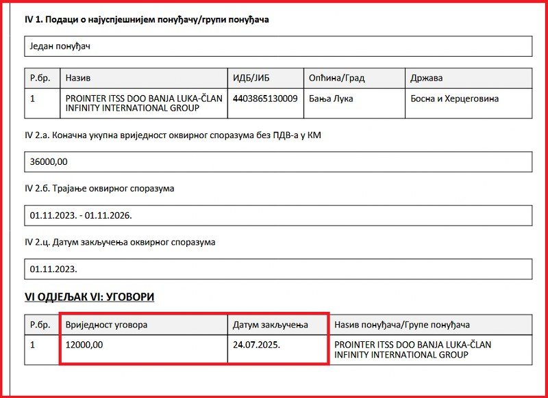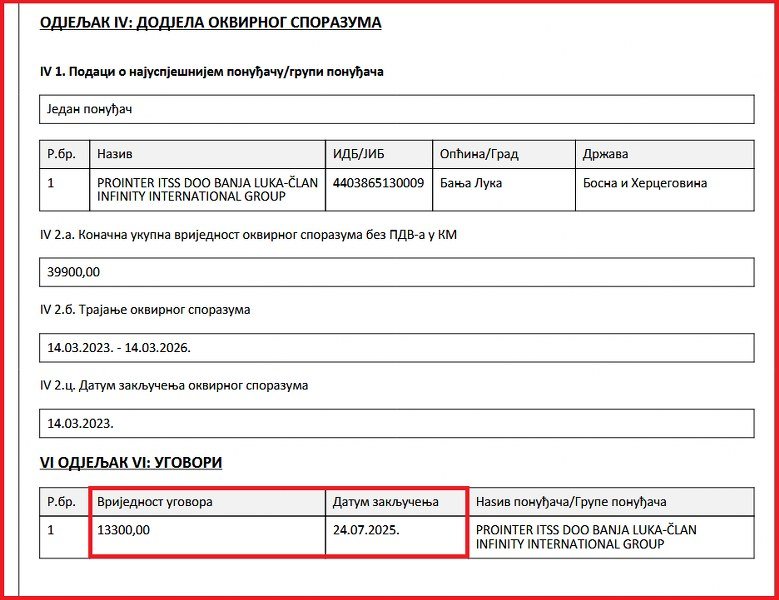 Firma koja u tom momentu nije imala ni aktivan račun ni radnike odjednom je bila zadužena za nabavke Veeam (15.561 KM) i firewall licenci (14.040 KM). Takođe, „Prointer“ je tada bio i na listi sankcionisanih Ministarstva finansija SAD.