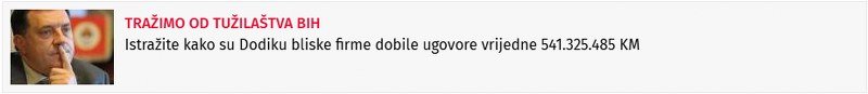 Žurnal je tokove javnog novca koji su se slijevali u kase firmi bliskih vrhu vlasti godinama pratio. Polovinom juna 2024. godine „Infinity International Group“, „Prointer“, „Kaldera Company“, „Infinity Media“, „K-2 Audio Services“, „Una World Network“ i „Sirius 2010“, firme povezane sa tadašnjim predsjednikom RS, sankcionisalo je Ministarstvo finansija SAD i označilo ih kao izvor prihoda korumpirane mreže.