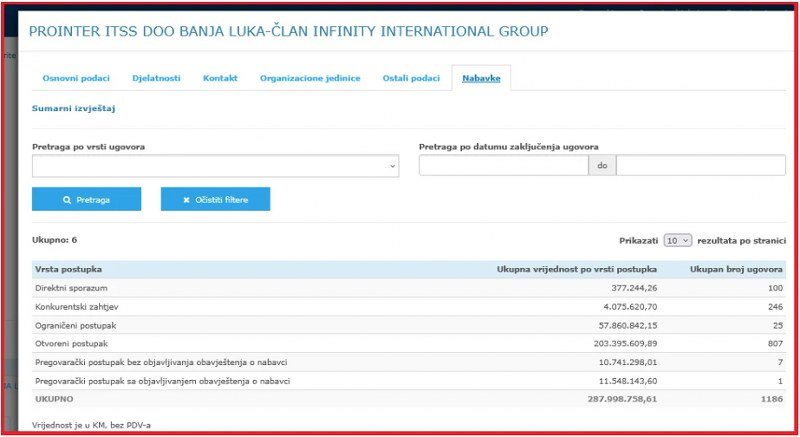Za 10 godina poslovanja javni sektor u Republici Srpskoj „Prointeru“ je obezbijedio 1.186 ugovora vrijednih ukupno 336.958.547,6 KM.