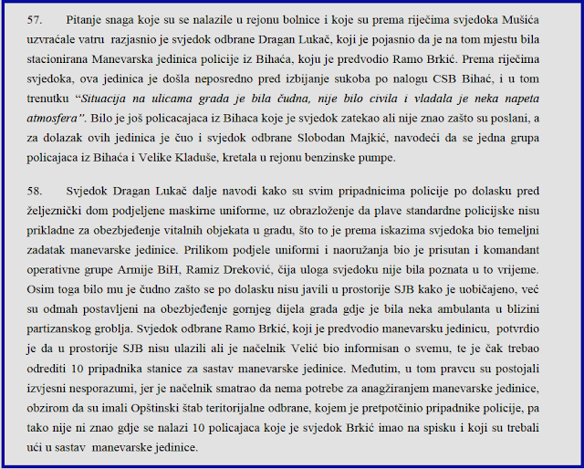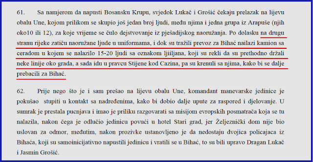 Na donjoj fotografiji predstavljam dijelove Lukačevog svjedočenja, tako da svako može provjeriti navode ovog teksta. Moram napomenuti da je MUP RS zvanično formiran 4. aprila 1992. i to od strane policajaca srpske nacionalnosti koji su se opredijelili za tu stranu. Suprotstavljenu Lukačevoj!