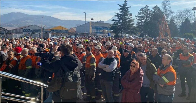 Foto: N1/protest radnika "Nove željezare" u Zenici 26.2.2026.