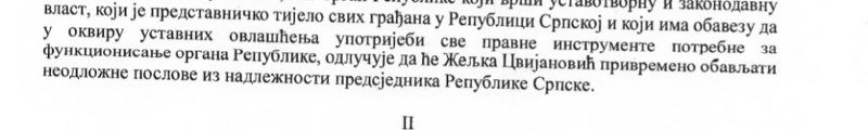 Nije poznato zašto se Milorad Dodik predomislio i odustao od toga da prijedlog za privremenog predsjednika bude Željka Cvijanović. Pravni stručnjaci su prekjuče i juče upozoravali da Cvijanović ne može po zakonu da bude na dvije stolice, budući da je i član Predsjedništva BiH. U slučaju njenog izbora za v.d. predsjednika ostala bi bez pozicije u Predsjedništvu a time bi bez člana Predsjedništva ostala i Republika Srpska.