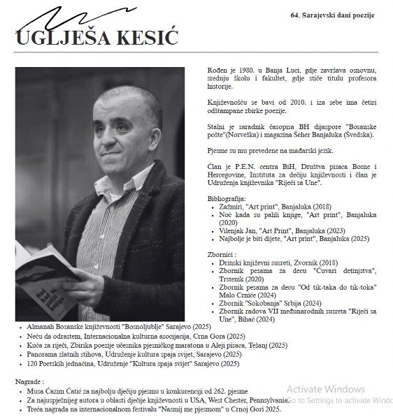 Svečano otvoreni 64. Sarajevski dani poezije. U srijedu 15.10.2025. godine u Muzeju književnosti i pozorišne umjetnosti BiH upriličeno je Svečano otvaranje 64. Sarajevskih dana poezije. U ime Društva pisaca u BiH obratio se istaknuti bosanskohercegovački književnik Mile Stojić.