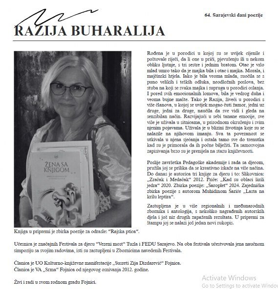 U sklopu manifestacije 64. Sarajevski dani promocije, u Muzeju književnosti i pozorišne umjetnosti BiH (Sime Milutinovića Sarajlije br. 7) u nedjelju 19.10.2025. godine upriličena je promocija izabranih djela Muhidina Šarića.