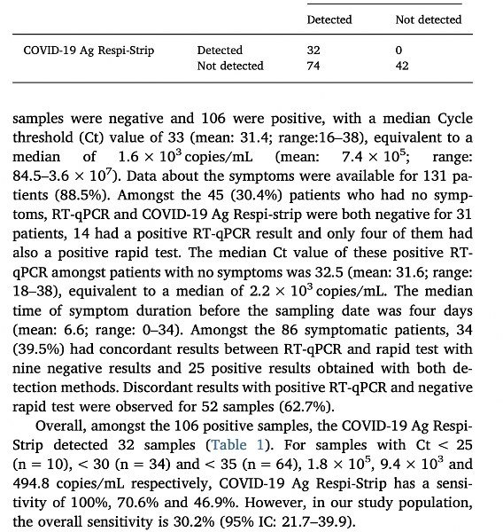 5. “RespiStrip”, prema nezavisnim studijama, pokazuje senzitivnost od samo 30,2 posto, što, pojednostavljeno rečeno, znači da od 100 pacijenata zaraženih virusom korona, Antigensko testiranje RespiStrip-om pokaže da samo njih 30 ima simptome korona virusa, dok za ostale bude negativan rezultat.