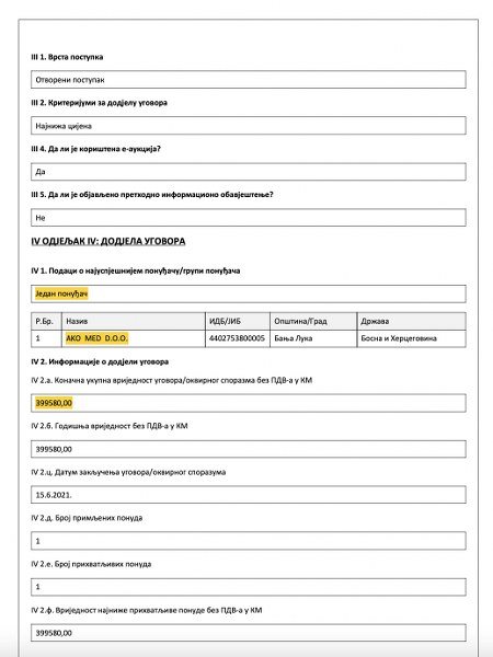 Institut za javno zdravstvo Republike Srpske, u julu ove godine, nabavio je, takođe, preko 18.000 testova po cijeni od 398.580 KM i proslijedio ih brojnim zdravstvenim ustanovama. "Ako Med" je bio jedini ponuđač.