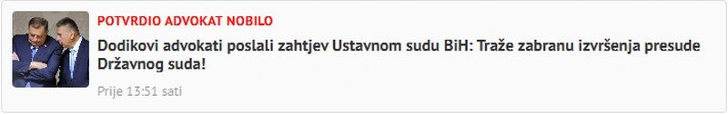 Iz Ustavnog suda BiH danas je potvrđeno za Raport da su advokati Milorada Dodika podnijeli privremenu mjeru u kojoj traže zabranu izvršenja presude Miloradu Dodiku, predsjedniku RS koji je pravosnažno osuđen u petak, 1. augusta na godinu dana zatvora i šest godina zabrana obavljanja javnih funkcija.