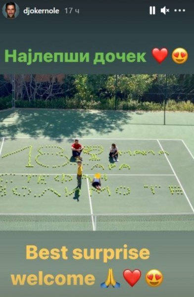 Za njegov doček, porodica mu je napravila nesvakidašnje iznenađenje na teniskom terenu sa teniskim lopticama, a loptice su iskoristili da napišu svoja imena i broj 18., koji simbolizuje broj osvojenih grend slem titula. a uz to i njihova imena "Tara, Stefan i mama" i ispod veliki natpis "volimo te".