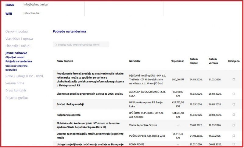 Kredit građanima, profit odabranima: U mjesec dana Tehnotimu dodijeljeno sedam tendera od 1,93 miliona KM