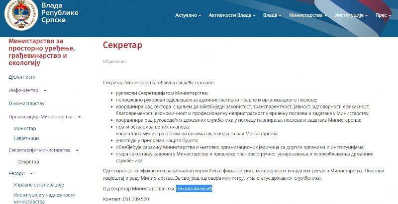 Nakon Radojičićevog pada, Aleksić je, nezakonito, na Radojičićevu molbu, primljen u Ministarstvo za prostorno uređenje, građevinarstvo i ekologiju, koje vodi ministroid Srebrenka Golić, gdje je uposlen, bez konkursa, na poziciju…