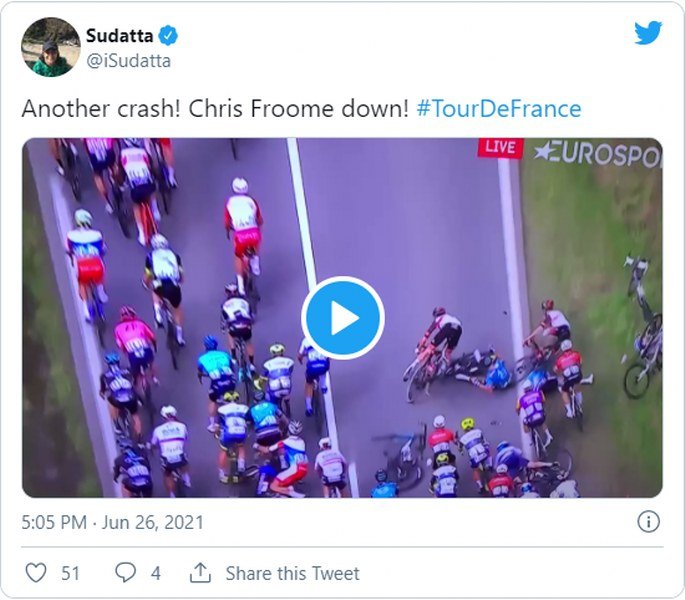 Padom Martina krenuli su da padaju i ostali biciklisti u grupi, te ih je na zemlji završilo čak oko 50. Bilo je i povrijeđenih, a snimak pada je za kratko vrijeme postao veoma popularan na društvenim mrežama.
