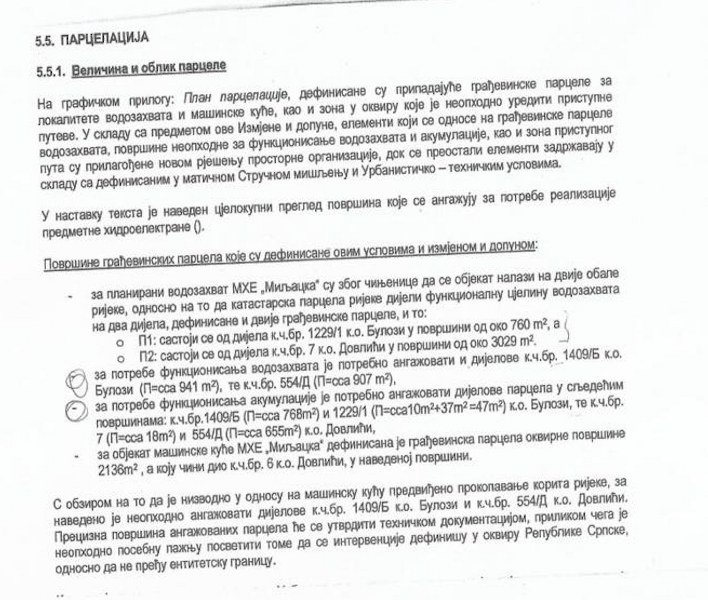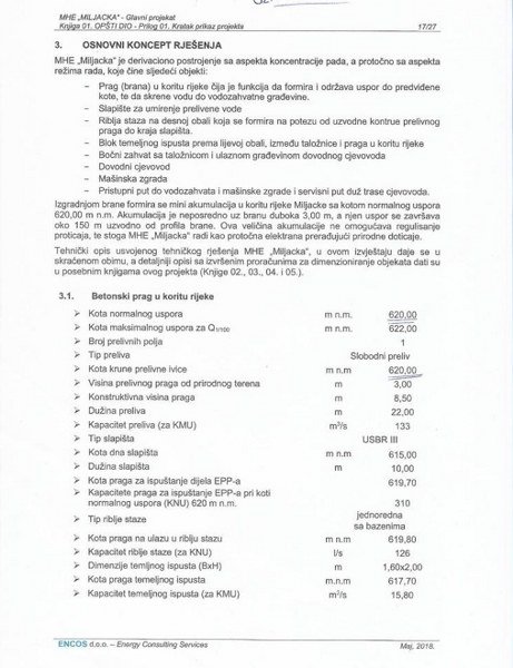 Riječ je građevinskoj dozvoli, upotrebnoj dozvoli i ekološkoj dozvoli, koje je izdalo Ministarstvo za prostorno uređenje, građevinarstvo i ekologiju i njihovoj neusklađenosti sa podacima iz Projekta izvedenog stanja za MHE „Miljacka“, te protokola o ispitivanju ugrađene opreme, sačinjenog od proizvođača „Kolektor turbo inštitut“.