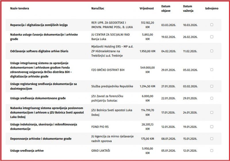 Ipak, najizdašniji proteklog januara bio je Fond zdravstvenog osiguranja Brčko distrikta. Integrisani sistem za upravljanje dokumentima i arhivom košta 642.333 KM. Zanimljivo, kao i obično, Karanov „Smart Archive Solutions“ jedini se javio.