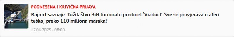 Hoće li reagirati Tužilaštvo BiH u aferi Viaduct?