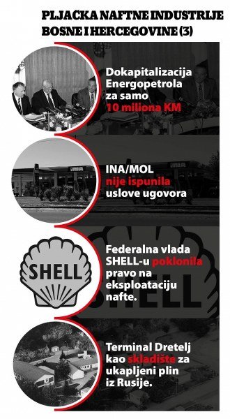 Nizozemska kompanije SHELL je 2013. sa federalnom vladom premijera Nermina Nikšića potpisala memorandum o dodjeli koncesije za eksploataciju nafte u Federaciji. Kako je Žurnal tada pisao, Shellu je obećano baš mnogo toga, od preferencije za koncesiju za istraživanje nafte, do primjene zakona Velsa i Engleske!? Od tada od Shella ni traga ni glasa.