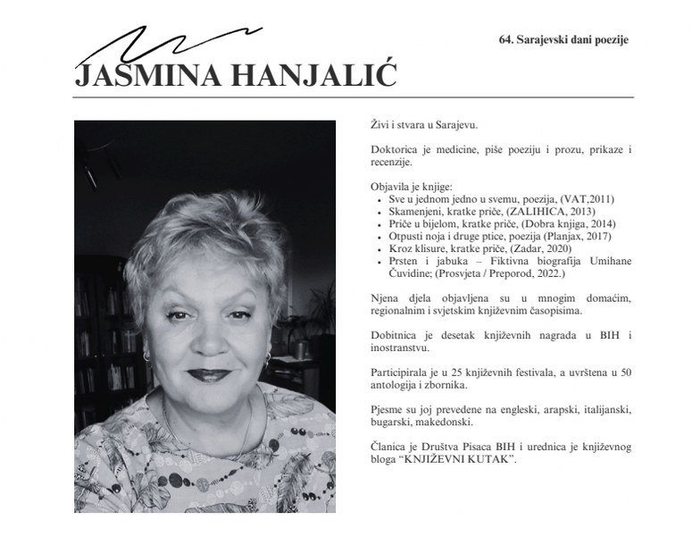 Predstavljen književni portret Jasne Šamić u okviru 64. Sarajevskih dana poezije