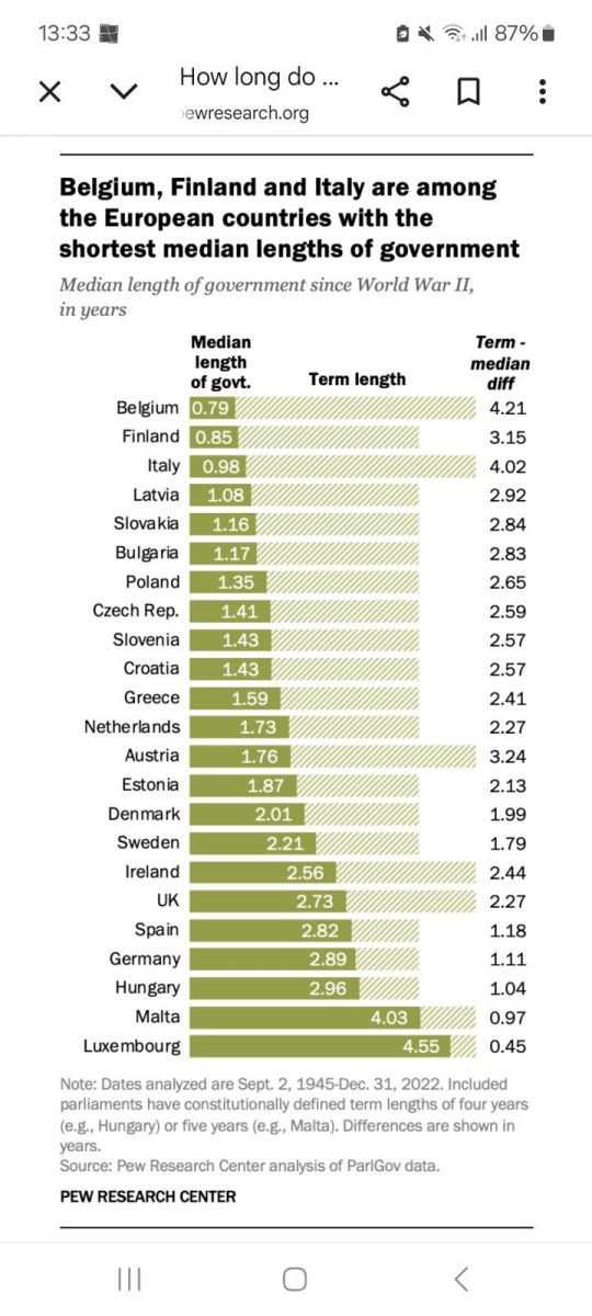 Duže od dvije godine trajale su vlade u: Danskoj, Švedskoj, Irskoj, Velikoj Britaniji (za vrijeme dok je bila u EU), Španiji, Njemačkoj i Mađarskoj.