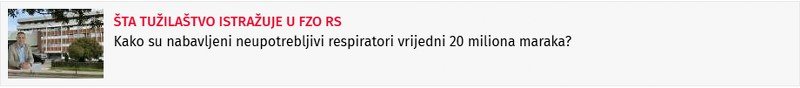 „Fond zdravstvenog osiguranja RS je od ponuđača "Medietik" nabavio 165 respiratora, koji su isporučeni zdravstvenim ustanovama u Republici Srpskoj, od kojih 85 nije pogodno za upotrebu kod pacijenata. Nabavkom respiratora i medicinske opreme firma "Medietik" ostvarila je prihod u visini od oko 12 miliona KM, dok je budžet RS oštećen za više od četiri miliona KM", saopšteno je tada iz Republičkog javnog tužilaštva, a pisao Žurnal.