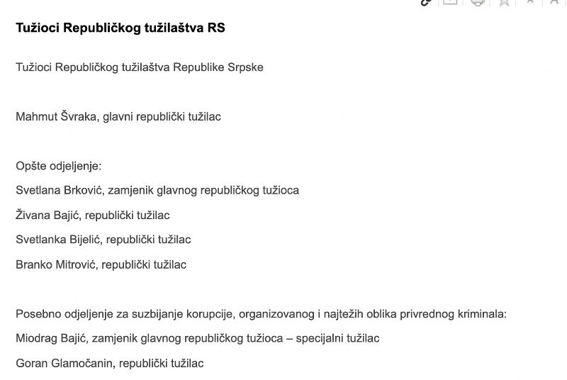 U skladu sa Vašim zahtjevom, obavještavam Vas da je postupajući tužilac u ovom predmetu Goran Glamočanin i da sa ovim predmetom, otkako se isti nalazi u radu tužilaštva, nije bio zadužen nijedan drugi tužilac.