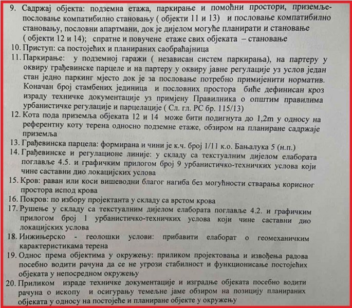 „Nadalje, u predmetnom postupku za izdavanje lokacijskih uslova priložen je List nepokretnosti br.3344 od 8.5.2025. godine, na osnovu kojeg se može utvrditi da su na parceli označenoj kao k.č.br.1/11 k.o. Banjaluka (novi premjer) upisani kao suvlasnici sa ½ dijela 'Pavgord' d.o.o. Foča i 'Respekt plus' d.o.o. Banjaluka“.