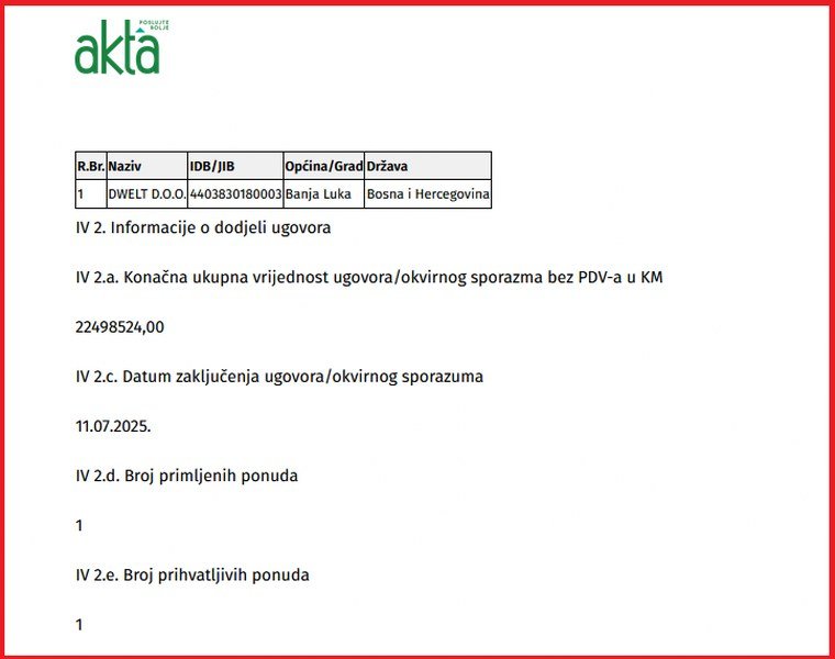 Za samo devet mjeseci ove godine firma „Dwelt“ čiji je vlasnik uspjela je sa javnim preduzećima pod kontrolom stranke potpisati devet ugovora ukupne vrijednosti 38.365.159 KM sa uračunatim PDV-om.