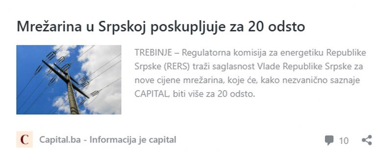 Podsjećamo, CAPITAL je ovakav scenario najavio početkom ovog mjeseca kada je RERS od Vlade RS tražila saglasnost za nove cijene mrežarina.