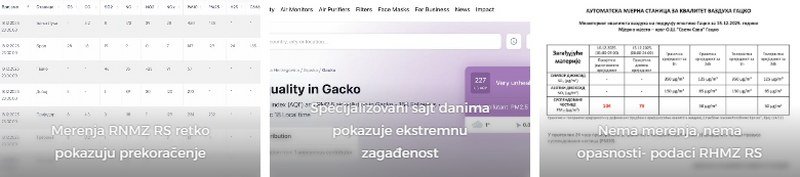 Merenja Republičkog hitrometeorološkog zavoda su daleko optimističnija. Poslednja koja su dostupna su baš za ponedeljak i utorak je od 15. i 16. decembra, beleže značajnije prekoračenje vrednosti suspendovanih čestica, ali nema informacije kolika je koncentracija sumpor i azot dioksida. Izveštaji pre toga uopšte ne beleže prekoračenja dozvoljenih vrednosti.