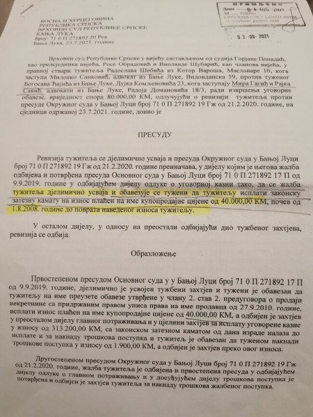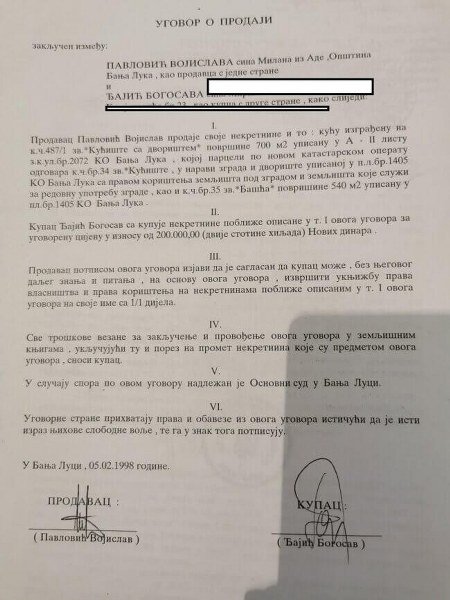 Interesantno je da je Vojislav Pavlović još 1991. godine odselio u Australiju, a navedeni ugovor je ovjeren u Osnovnom sudu u Banjaluci pod brojem 14-133-122/98.