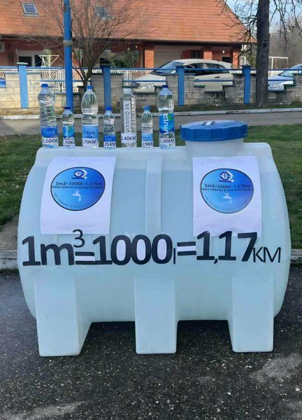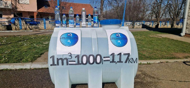 Da bismo imali realan doživljaj koja je to količina vode, zamislimo pet velikih bačvi od po 200 litara vode, ili da ovu količinu vode prenosimo u flašama zapremine od po 1 litar, od tačke A do tačke B, bilo bi potrebno da put između ove dvije tačke pređemo 500 puta u jednom pravcu ili ukupno 1000 puta, udaljenost zamislite sami.