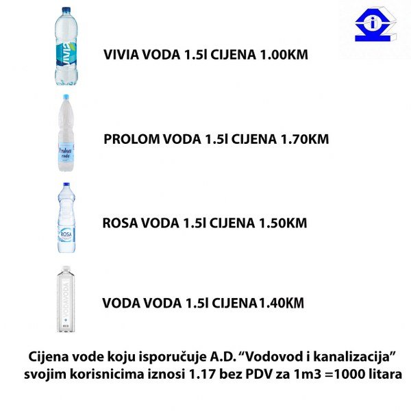 Naravno, nema potrebe za ovom Vašom fizičkom aktivnošću jer ovu količinu vode dobijate isporučenu na Vašem točećem mjestu za trenutni iznos od 1,17 KM po m3.