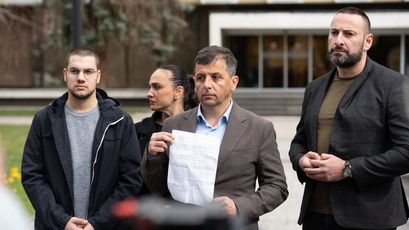 Foto: Gerila/Nebojša Vukanović i poslanici Liste za pravdu i red nakon što mu je prvi put zapaljen automobil