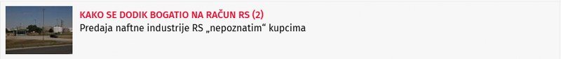 U martu ove godine Žurnal je podsjetio na sumnjivu prodaju naftne industrije RS. Jedan od prvih poteza Milorada Dodika po povratku na vlast u Republici Srpskoj 2006. godine bila je izmjena Zakona o privatizaciji državnog kapitala. Razlog će uskoro biti poznat. Potpisan je protokol o prodaji naftne industrije RS. Rafinerija nafte u Brodu, Rafinerija ulja u Modriči te distributivno preduzeće ''Petrol'' su prodate za 236 miliona KM ruskoj kompaniji „NeftGazinKor“.