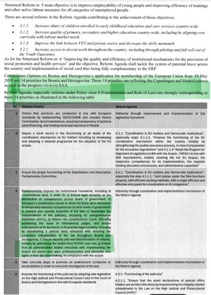 Radi se o obavezama na str. 21 Reformske agende, po zahtjevu o 14 priroriteta koje je Evropska komisija u maju 2019. godine postavila pred BiH za njeno članstvo u EU.