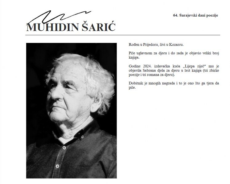 U sklopu manifestacije 64. Sarajevski dani promocije, u Muzeju književnosti i pozorišne umjetnosti BiH (Sime Milutinovića Sarajlije br. 7) u nedjelju 19.10.2025. godine upriličena je promocija izabranih djela Muhidina Šarića.