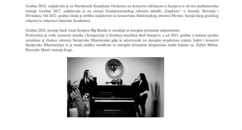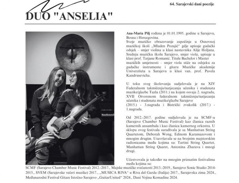 U programu Svečanog otvaranja sudjelovat će: Chris Lauer (Luxemburg), Faiz Softić (BiH/Luxemburg), Aleksandra Čvorović (BiH), Olja Runjić (Hrvatska), Mustafa Zvizdić (BiH), Marko Pogačar (Hrvatska), Amir Talić (BiH), Rapko Orman (BiH) Bjanka Alajbegović (BiH) i Adnan Žetica(BiH).