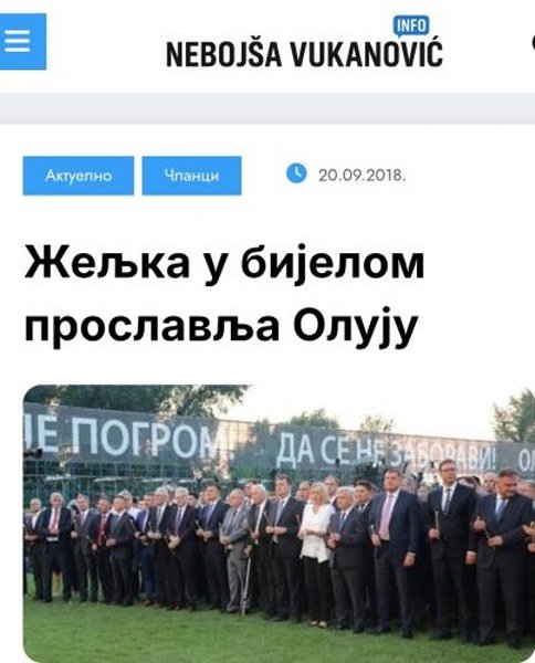 Nažalost i ove godine, kao i 2018. godine, Željka Cvijanović je bila jedina osoba u bijelom sakou na obilježavanju stradanja Srba u Oluji, što predstavlja drsku i svjesnu provokaciju, jer iako sam ranije pisao o njenom neprimjerenom oblačenju, bijelom sakou na obilježavanju stradanja Srba u „Oluji“ i Donjoj Gradini ona iznova i iznova nastavlja da vrijeđa i provocira, i to radi vrlo svjesno.