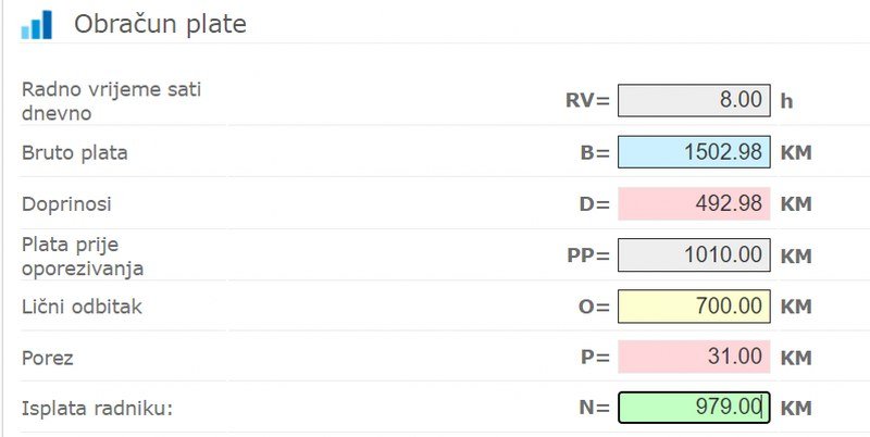 Ako kao primjer uzmemo iznos prosječne plate u Republici Srpskoj 979 KM- obaveze prema državi su 523 KM.