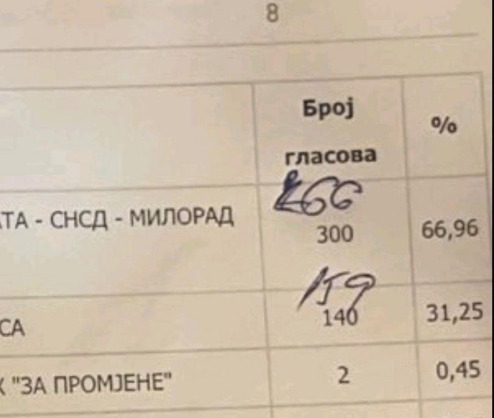 Samo na jednom biraćkom mjestu Miloradu Dodiku je dopisano 140 više, a Jeleni Trivić 106 manje glasova.