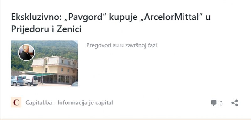 Podsjećamo, Pavlović je nedavno preko svojih firmi „Pavgord“ i H&P kupio kompaniju ArcelorMital u Prijedoru i Zenici.