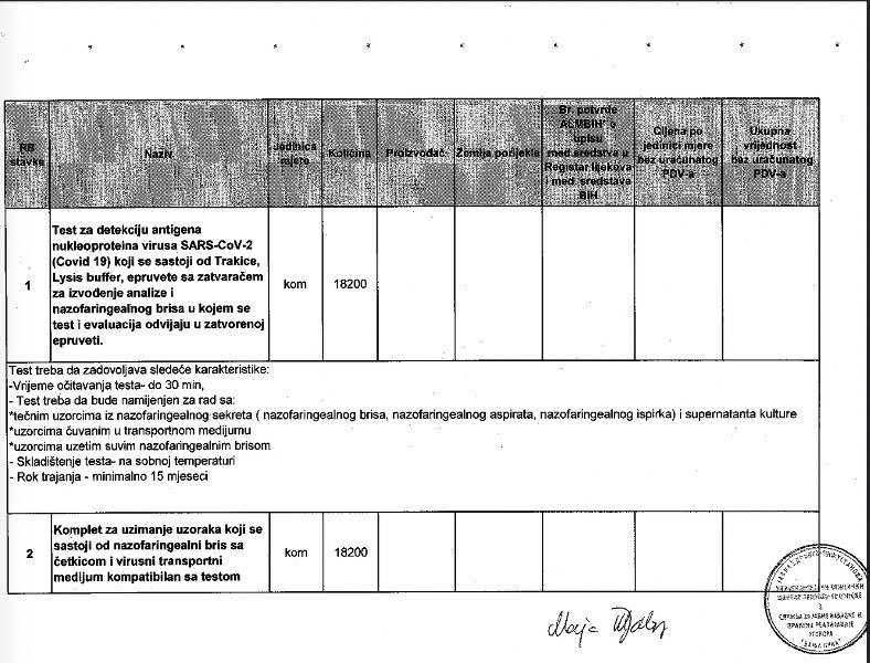 Treš testovi kojima se direktno atakuje za zdravlje stanovništva, povećava broj zaraženih i broj mrtvih, nabavljeni su u julu i septembru ove godine, a tenderi za njih raspisani u junu i avgustu ove godine.