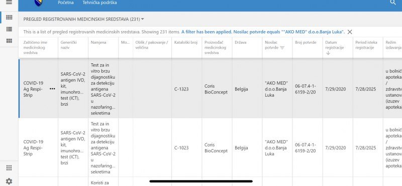 “Ako Med”, vlasništvo Jovana i Stojana Radakovića, ovlašteni je uvoznik Antigen testa “Respi strip”; Ovlašten je od Agencije za lijekove BiH 29.07.2020., a registracija im ističe 28.07.2025. godine.