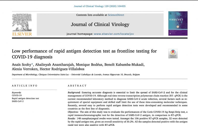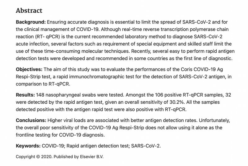 5. “RespiStrip”, prema nezavisnim studijama, pokazuje senzitivnost od samo 30,2 posto, što, pojednostavljeno rečeno, znači da od 100 pacijenata zaraženih virusom korona, Antigensko testiranje RespiStrip-om pokaže da samo njih 30 ima simptome korona virusa, dok za ostale bude negativan rezultat.