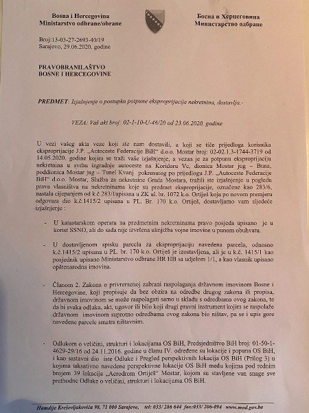 U odgovoru na naše upite iz JP Autocesta FBIH naglašavaju da kada je u pitanju perspektivna vojna imovina se radi o nekretninama koje su obuhvaćene važećim aktom o javnom interesu koje se zbog toga moraju eksproprisati.