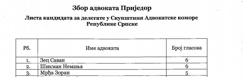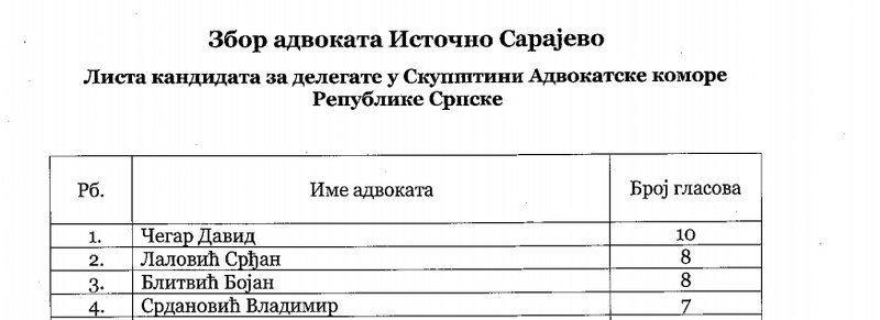 3. Moji izvori iz reda advokata su mi potvrdili da najveće šanse da budu izabrani imaju advokati Dalibor Mrša i Mirko Dabić. Bitno je reći da su advokati Siniša Marić i Nebojša Milanović ne samo kvalitetni advokati, nego i pošteni ljudi.