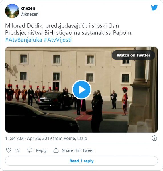 Treba podsjetiti i to da je Dodik tokom višedesenijske vladavine u Republici Srpskoj u dva navrata boravio i kod pape u Vatikanu.