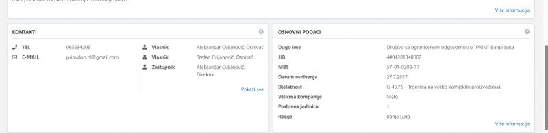 Foto: Faksimil dijela stranice Company Wall: Cvijanovići vlasnici firme Prim d.o.o.