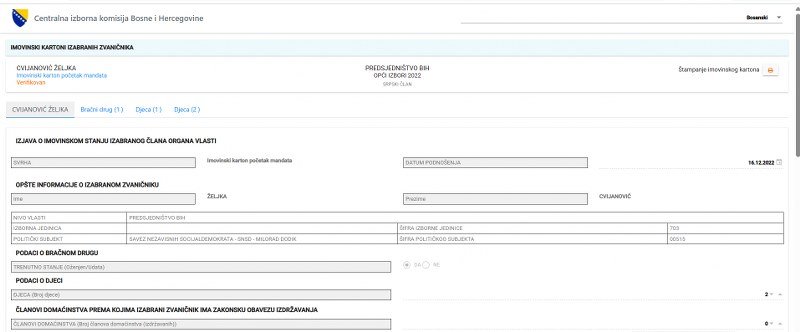 Detaljnije informacije o Cvijanovićkinoj pozajmici nije moguće pronaći u izjavi o imovinskom stanju u CIKBiH, jer ih nije bila u obavezi ni dostaviti, a s druge strane CIK BiH nije odgovoran za tačnost podataka koji se odnose na podatke sadržane u obrascu o imovinskom stanju, pa se ponovo aktuelizira pitanje, kakva je svrha da političari navode svoje imovinsko stanje kada niko ne provjerava jesu li naveli istinite podatke.
