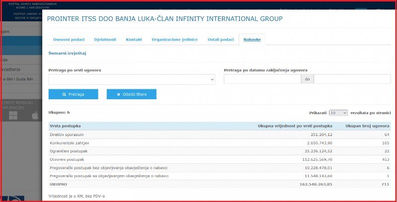Od osnivanja 2015. godine do danas „Prointer“ je sa javnim sektorom je sklopio 711 ugovora ukupne vrijednosti 190.172.109 KM.