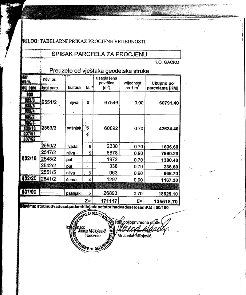 Parcele privremeno oduzete od braće Vučenović, da bi kasnije bile predmet razmjene u slučaju eksproprijacije između RiTE Gacko i Jovana Govedarice.