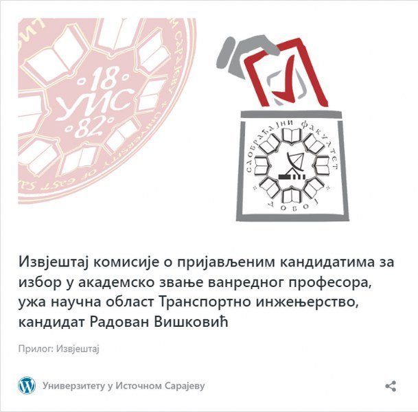 Pišem Vam da vas obavjestim da se desio još jedan skandal u našem visokom obrazovanju, ali i u vrhu vlasti. Najkraće rečeno, Univerzitet u Istočnom Sarajevu je nezakonito izabrao premijera Radovana Viškovića, u zvanje vanrednog profesora 2020. godine! Višković nije ispunjavao uslove za izbor u zvanje, jer nakon izbora u zvanje docenta NIJE objavio pet naučnih radova , koliko je obavezno da se objavi po Zakonu o visokom obrazovanju, nego samo četiri (ako je i toliko).